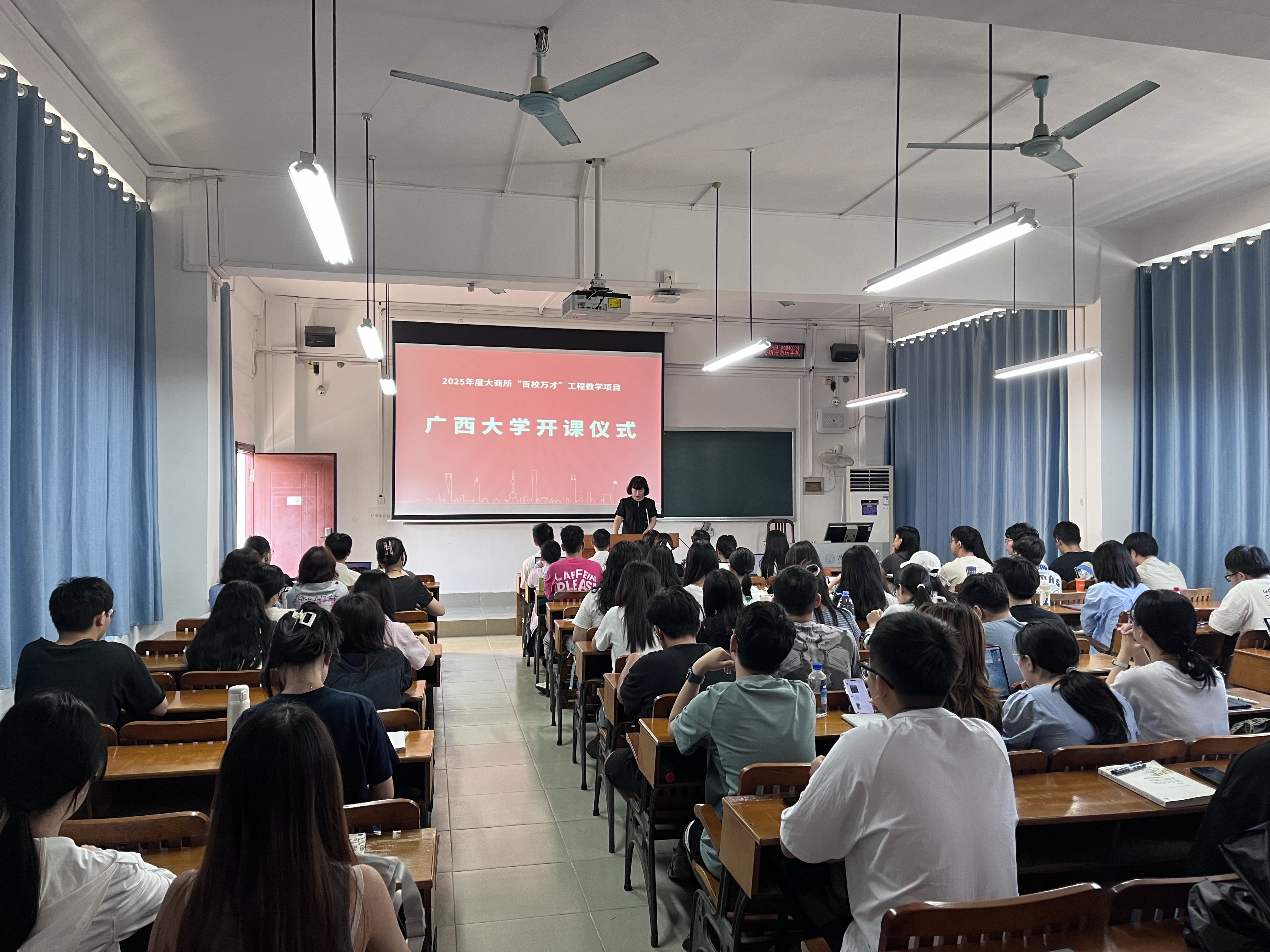 为推动产学研协同建设,促进广西壮族自治区商品期货与衍生品行业高端人才培养, 由大连商品交易所、中信期货有限公司、广西北港油脂有限公司共同举办的“百校万才”工程教学项目课程《期货、期权及其他衍生品》于2025年9月23日在广西大学经济学院正式开课。