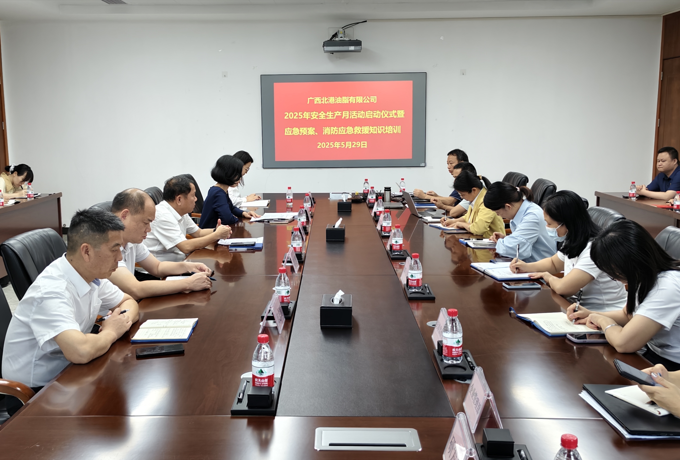 近日,北港油脂正式启动以“人人讲安全、个个会应急——查找身边安全隐患”为主题的2025年“安全生产月”专项活动。公司领导班子成员、本部各部室负责人及安全管理人员参加启动仪式,公司党委副书记、副董事长、总经理罗小华主持会议,党委书记、董事长杨文部署重点工作。